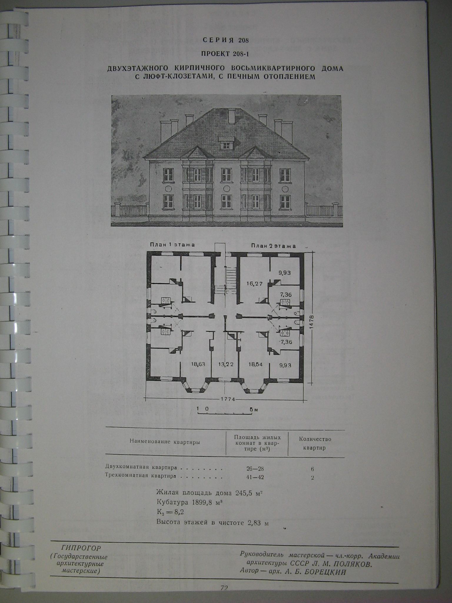 Серия 208 Проект 1. Двухэтажного кирпичного восьмиквартирного дома с люфт-клозетами, с печным отоплением