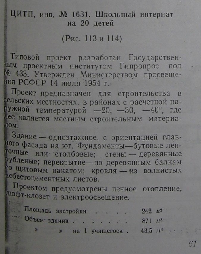 ЦИТП, инв. № 1631. Школьный интернат на 20 детей