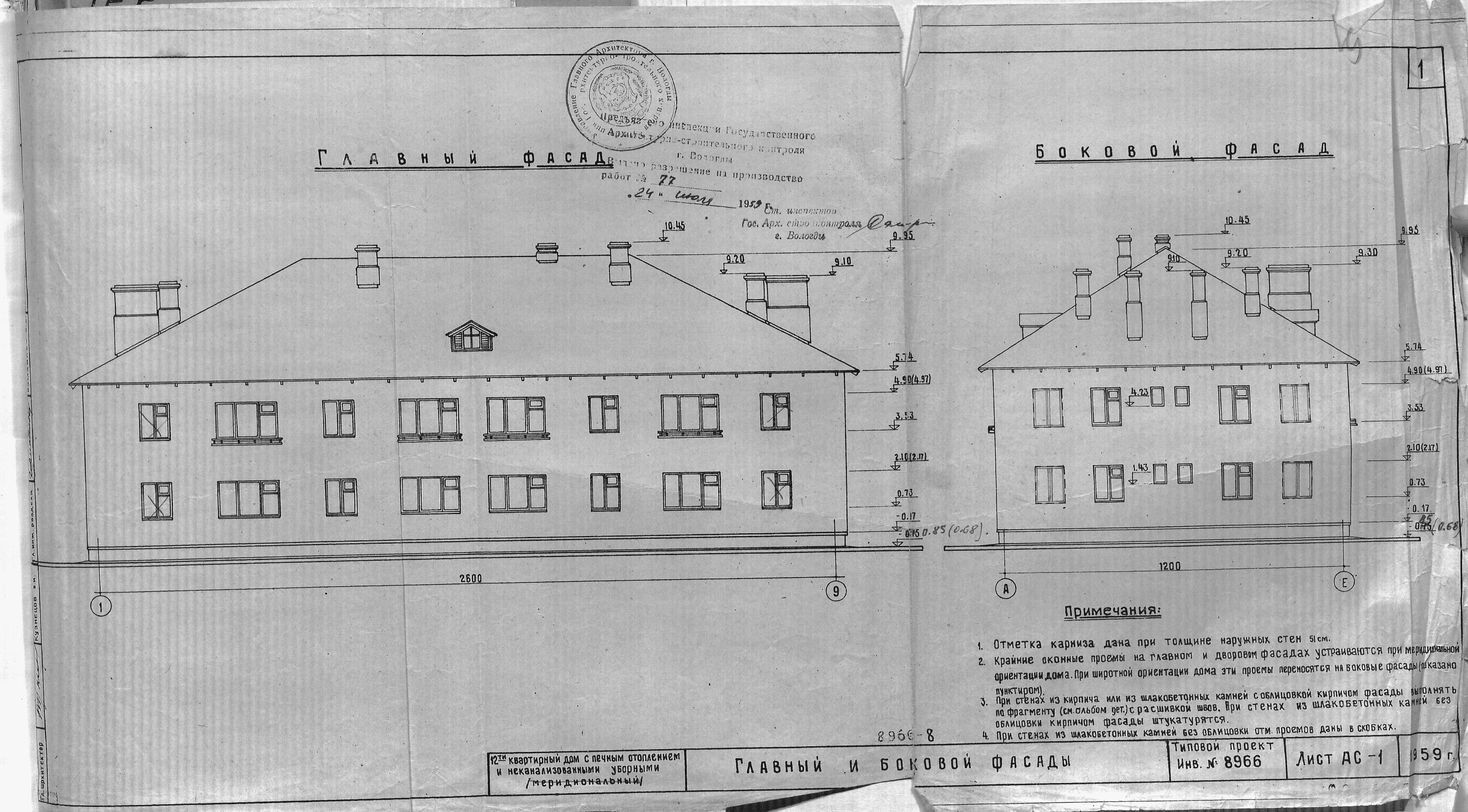 4. При стенах из шлакобетонных камней без облицовки отм. проемов даны в скобках.